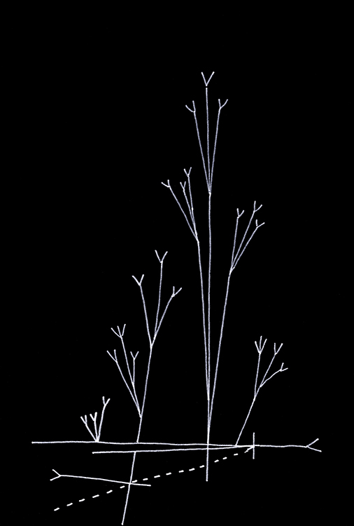 Permanent marker on black cardboard.