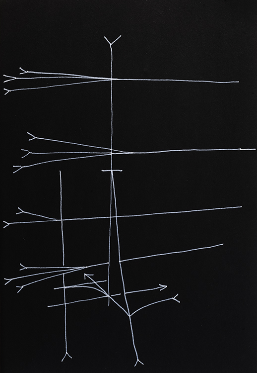 Permanent marker on black cardboard.