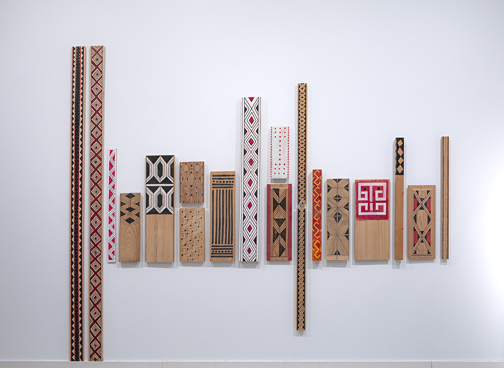 Permanent marker on boards.