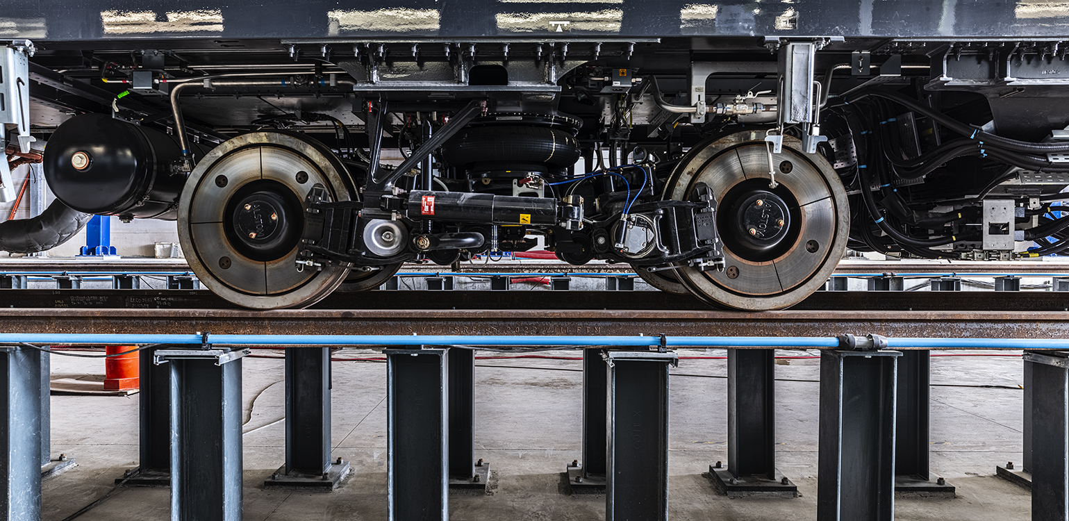 Cancún, taller y cochera, trén sobre vía en pilarillos 2, 2024.